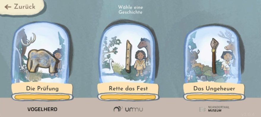 Wie wäre es einmal in der Mammutsteppe um 40 000 Jahre vor heute zu leben? In einer Welt, die noch von Mammuts, Riesenhirschen und Wollhaarnashörnern bevölkert ist? In einem Land, in dem Jägerinnen und Sammler das Überleben ihrer Familie sichern? Gemeinsam mit dem Neanderthal Museum, dem Urgeschichtlichen Museum Blaubeuren und der Fundstelle Vogelherd wurde mit „Eiszeitwelten“ eine digitale Entdeckungsreise in die Eiszeit entwickelt. Das Mobile Game zielt auf ein junges Publikum ab und kann unabhängig vom Museumsbesuch gespielt werden.